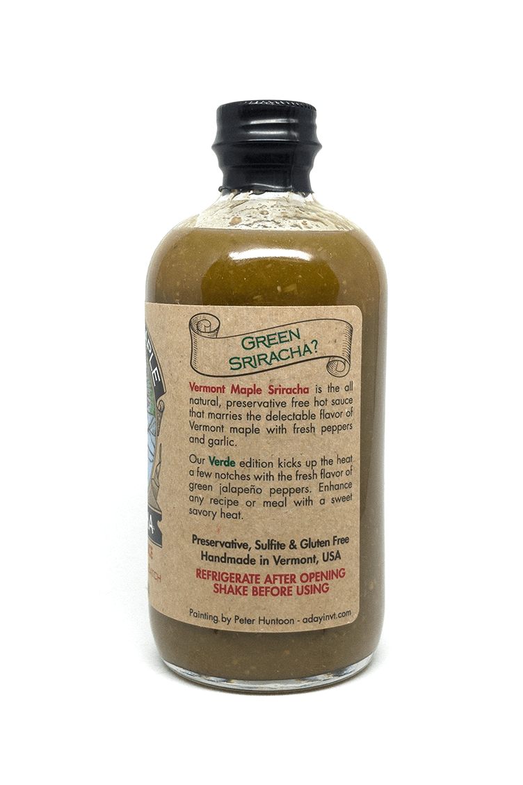 Vermont Maple Sriracha « Verde » est Fabriqué avec des poivrons jalapeños frais, cette nouvelle sauce offre une saveur vert clair avec juste un peu plus de chaleur que le ‘Original Maple Sriracha’.